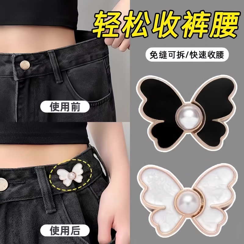 牛仔褲腰圍改小固定裝飾神器珍珠收緊紐扣免釘蝴蝶收腰扣子免打孔