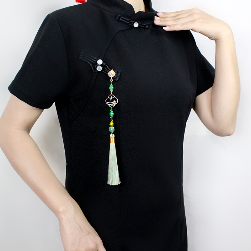 國風新中式旗袍壓襟扣頭流蘇掛件精致配飾復古風胸針禁步胸前吊墜
