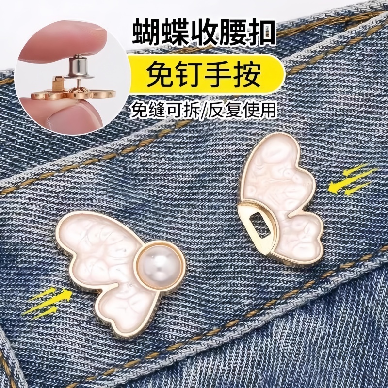 蝴蝶收腰扣免打孔牛仔褲腰圍改小固定褲腰調節扣珍珠收緊紐扣免釘