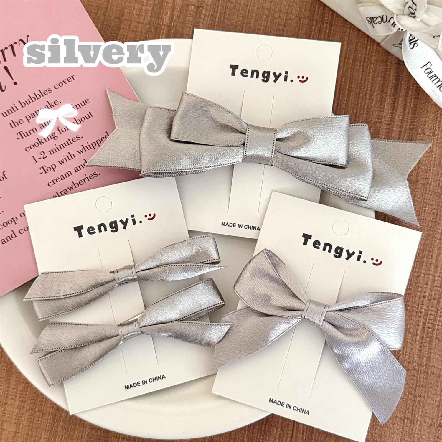 騰藝嚴選銀色系氣質蝴蝶結發夾少女百搭發卡高級感劉海夾不傷發裝