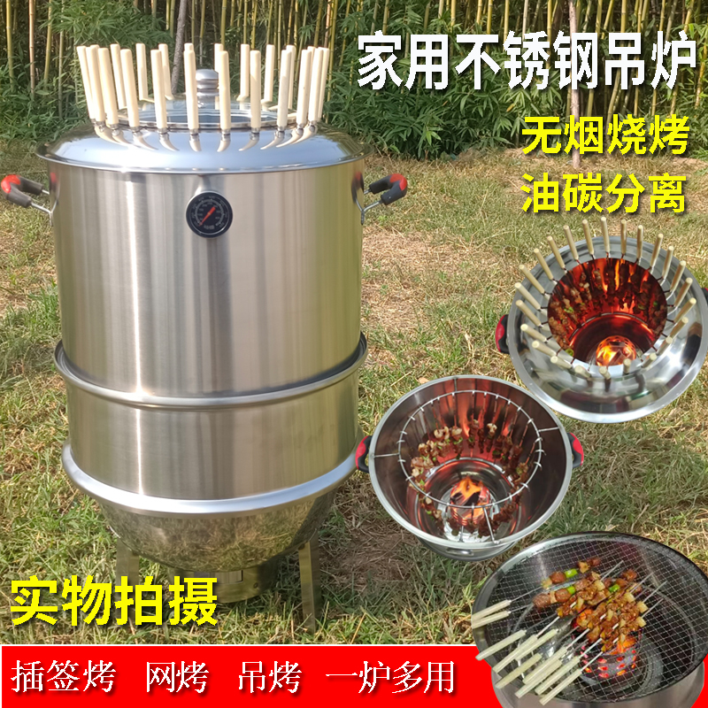 木炭烤爐戶外便攜吊爐不銹鋼燜烤架庭院碳烤肉串無煙燒烤爐子家用