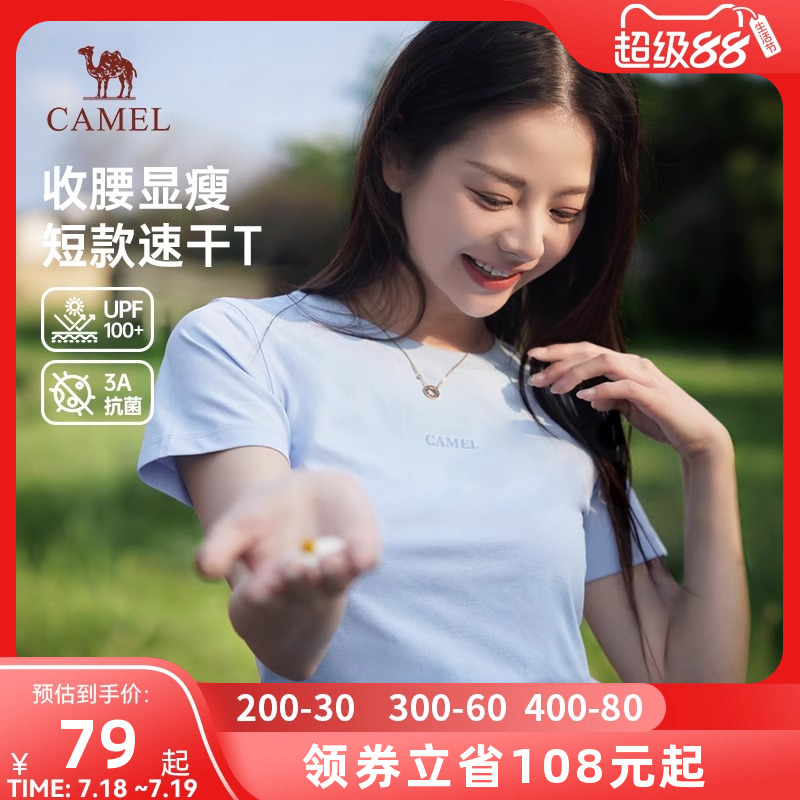 駱駝女裝短T恤2025春夏新款收腰顯瘦速干防曬時尚印花休閑短袖