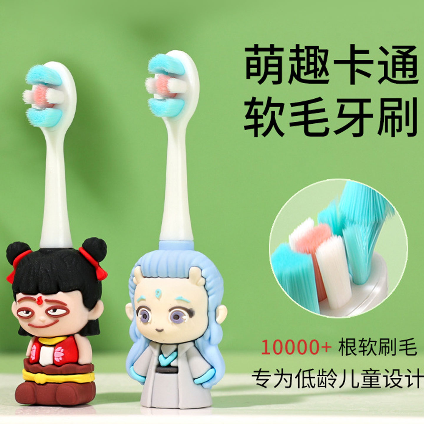 哪吒兒童牙刷0-3歲到6歲軟毛卡通訓練寶寶小孩牙膏可愛寶寶幼兒園
