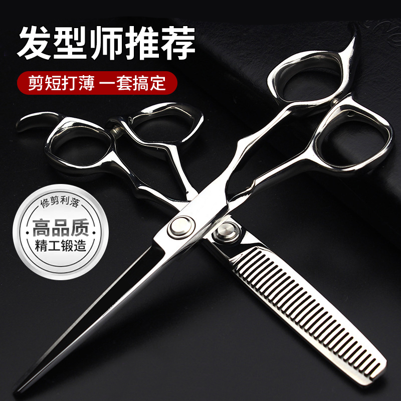 褚鐵匠專業理發美發剪刀寶石款大耳朵手柄打薄剪套裝發型師專用