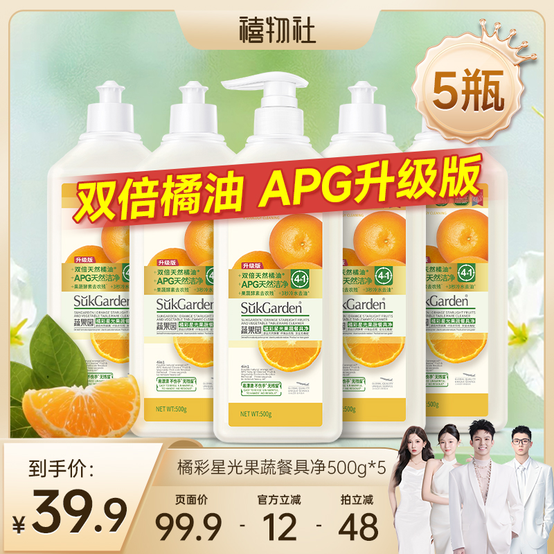【禧物社】蔬果園APG洗潔精果蔬餐具凈洗碗去油農殘500g*5