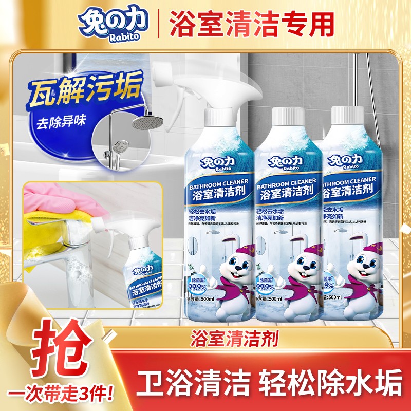 兔の力3瓶裝浴室清潔劑沐浴房瓷磚水垢清除劑衛生間除垢馬桶去污
