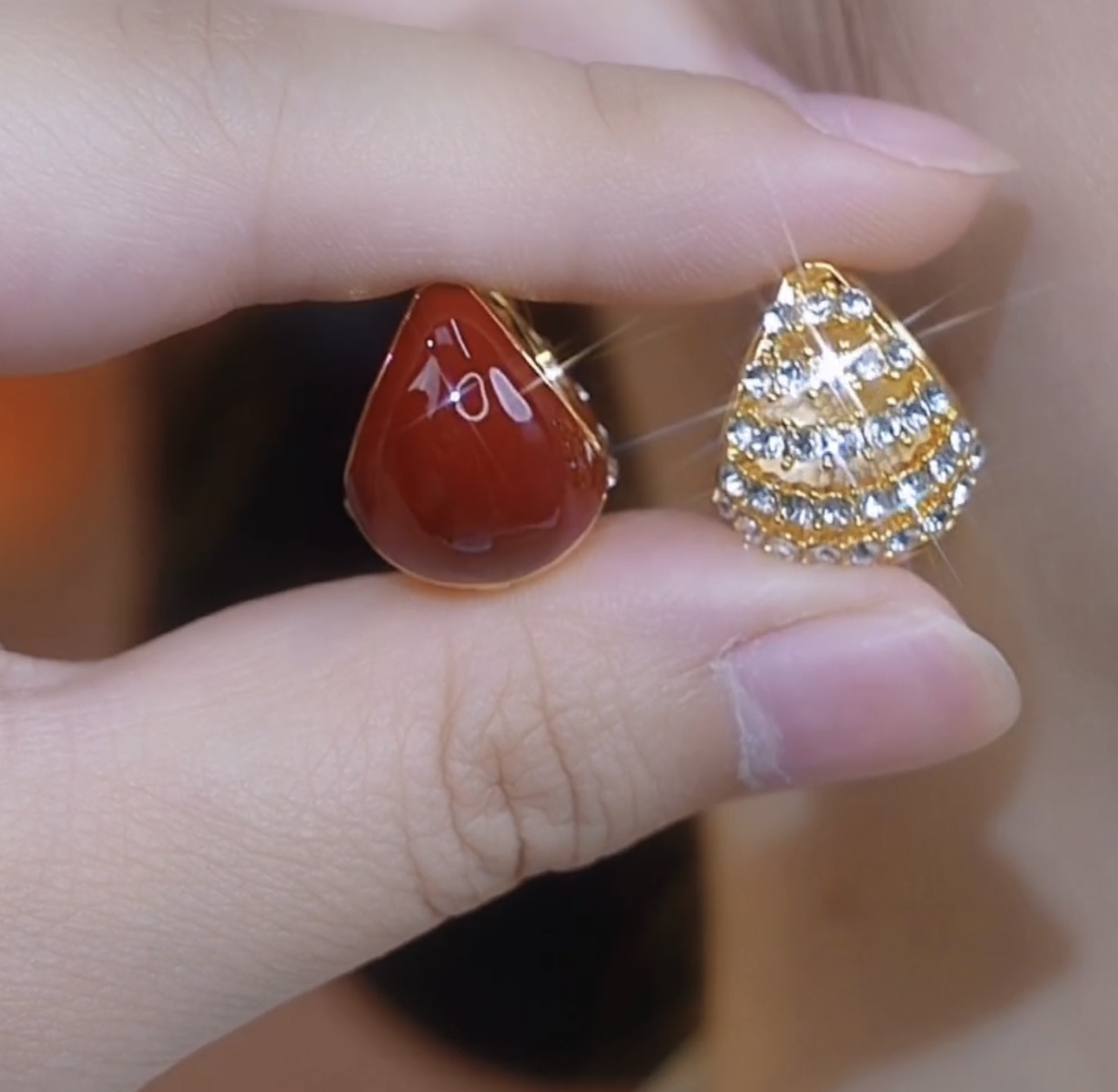 紅色雙面鋯石水滴形耳釘高級感輕奢重工精致2025年新款耳扣耳飾女