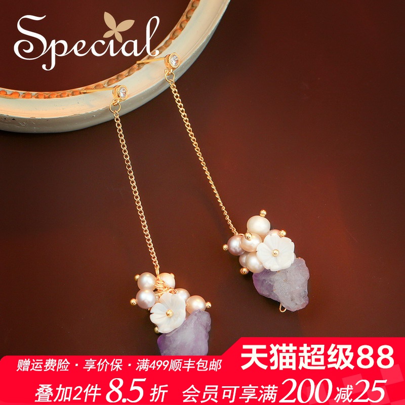 SPECIAL淡水珍珠紫水晶耳釘長款流蘇掃肩耳飾女2025年新款禮物