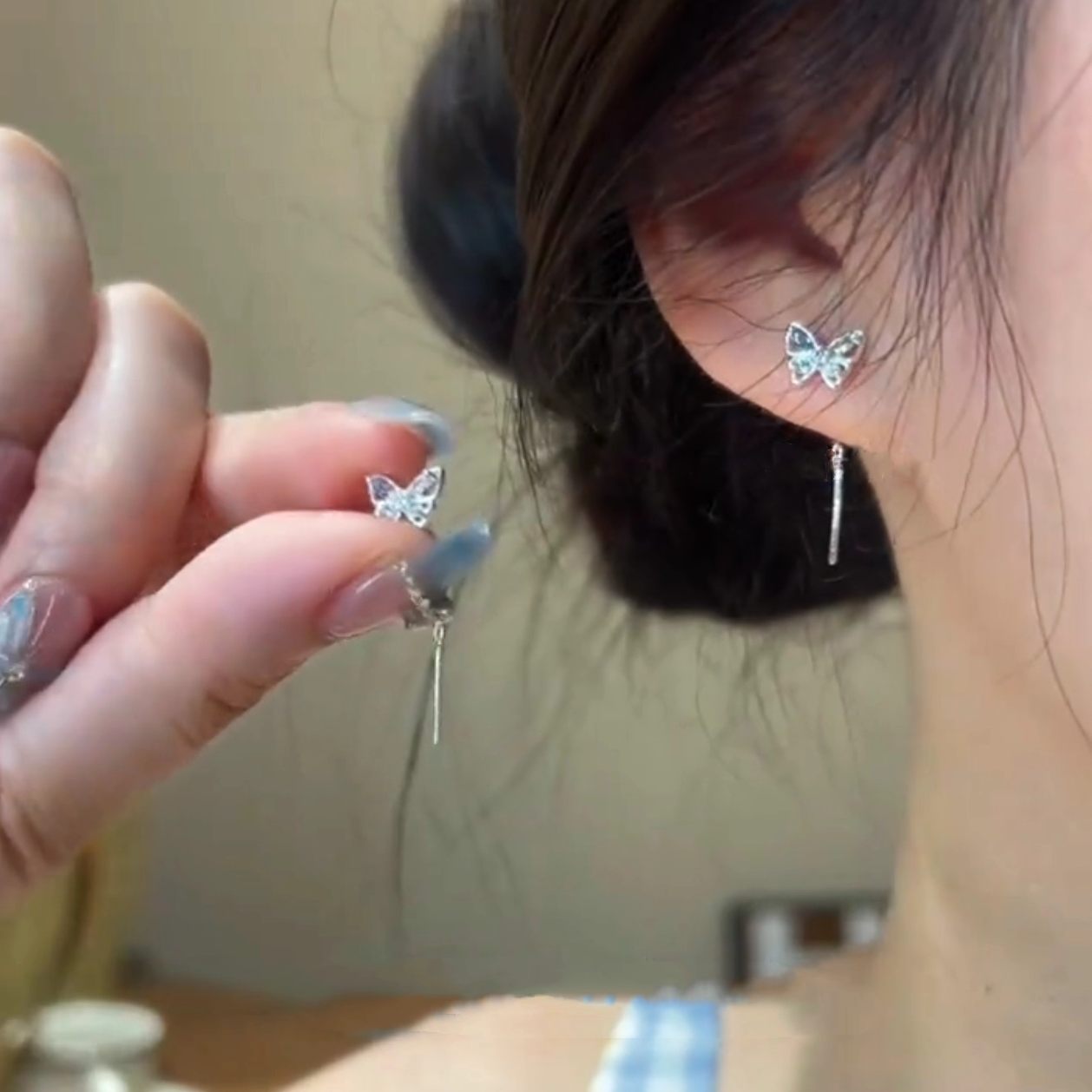 2025新款彩色蝴蝶耳線超仙甜美精致耳環女氣質設計感簡約流蘇耳飾