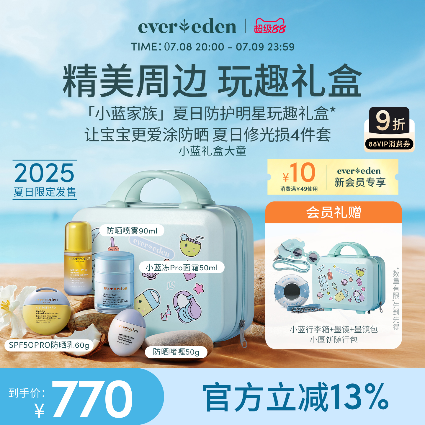 Evereden/安唯伊小藍家族面霜防曬乳液氣墊噴霧兒童節禮盒