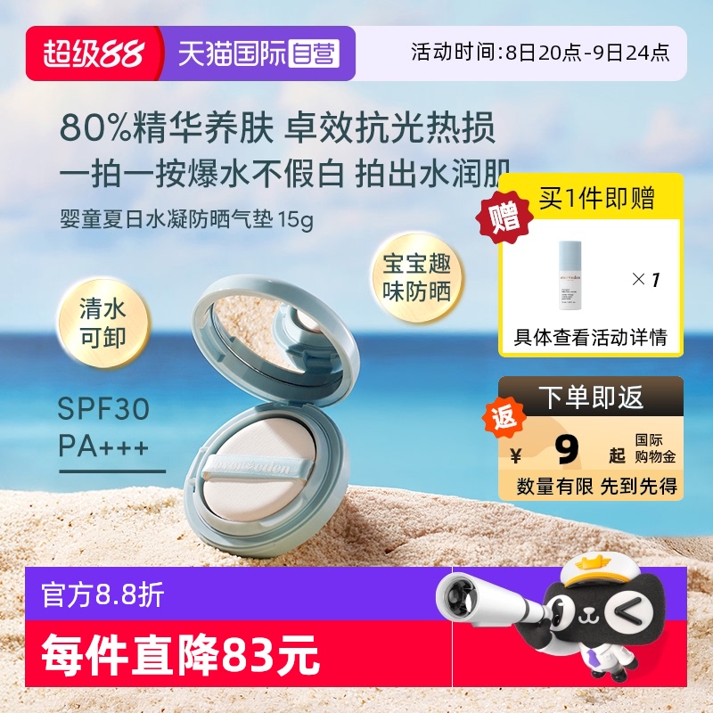 【自營】Evereden夏季兒童清水可卸不假白物理防曬氣墊SPF30 15g