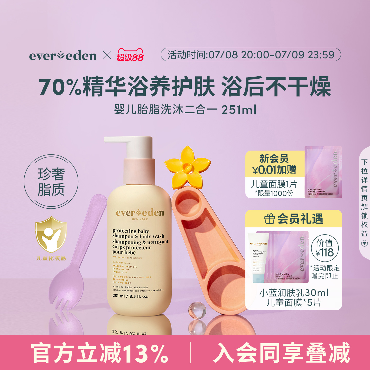 Evereden安唯伊嬰兒沐浴露特潤保濕護膚胎脂親護洗沐二合一251ml