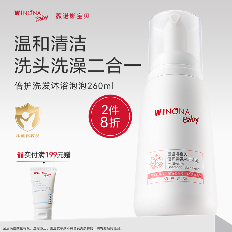 薇諾娜寶貝溫和沐浴洗發二合一沐浴泡260ml兒童專用洗沐清潔