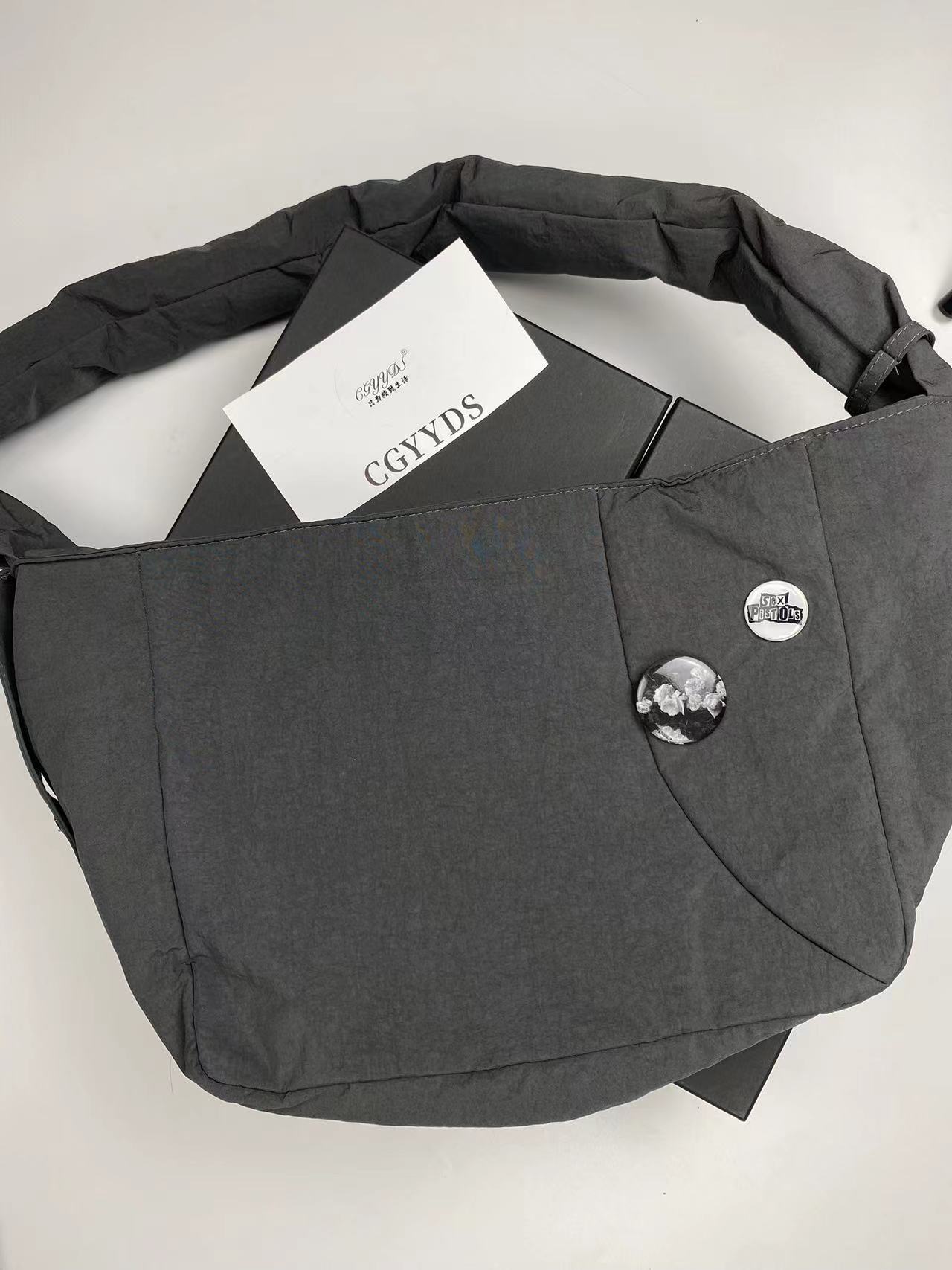 CGYYDS限定 新款 胸章 褶皺肌理紐扣充絨大容量斜跨旅行包流浪包