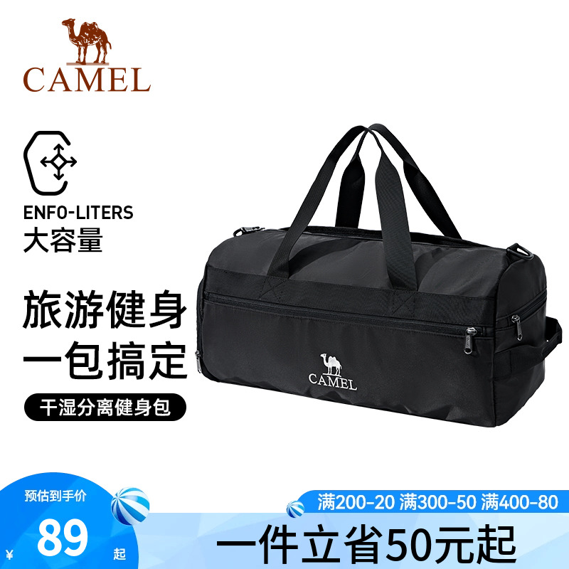 駱駝大容量手提包旅行袋登機出差托特包旅游沙灘包健身包斜挎背包