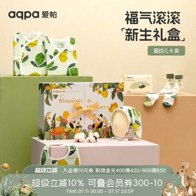 aqpa愛帕新生兒的見面禮盒七件裝夾棉保暖秋冬寶寶嬰兒禮物滿月禮