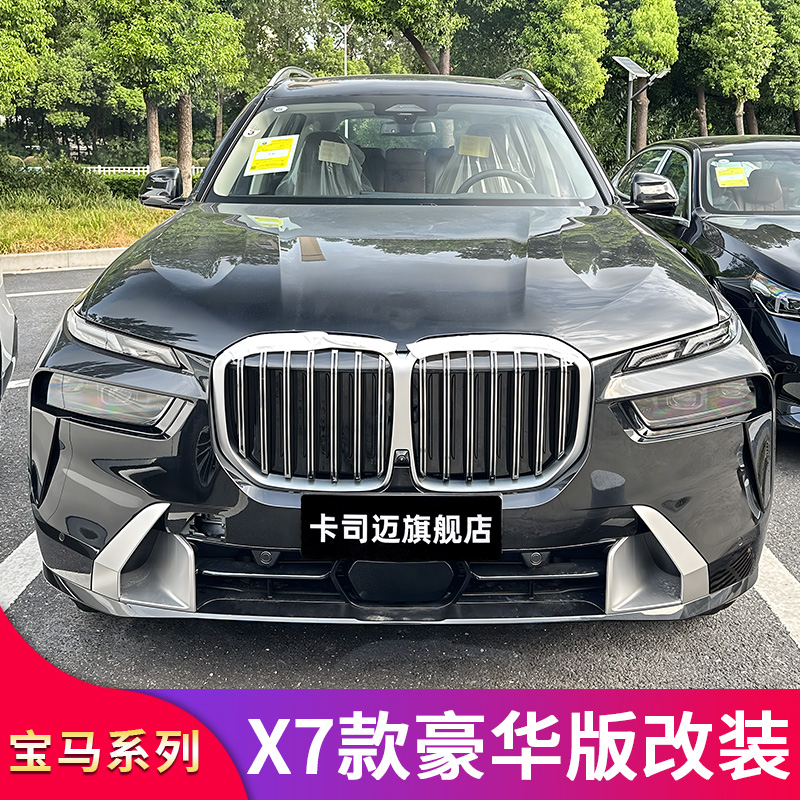 適用寶馬X7改裝大燈燈眉中網格柵車窗飾條鼻孔黑化牛角后視鏡罩蓋