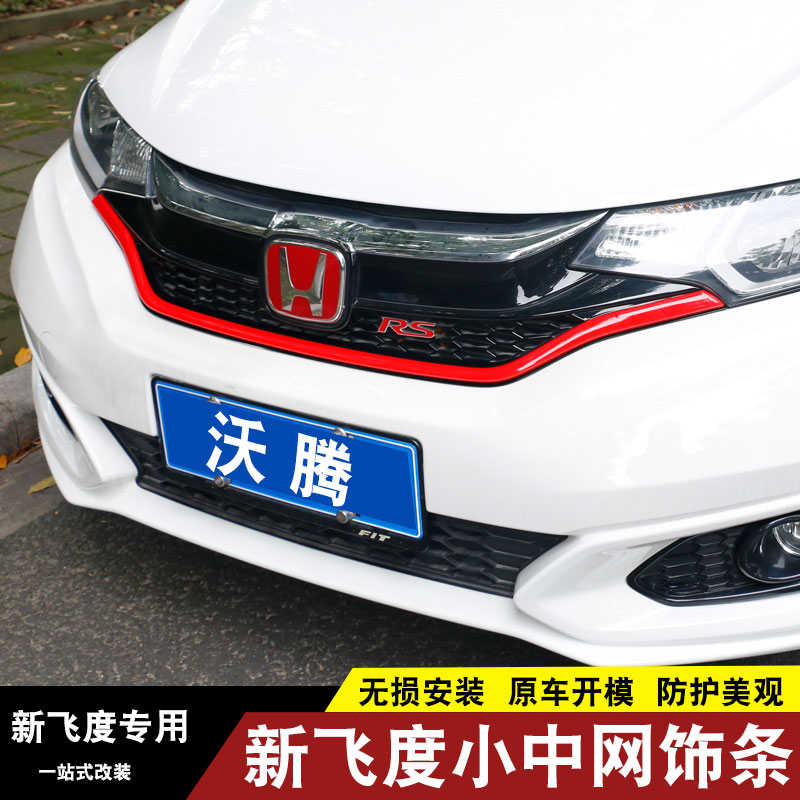 適用21新飛度中網飾條14-18款潮跑GK5改裝烤漆紅唇小中網裝飾亮條