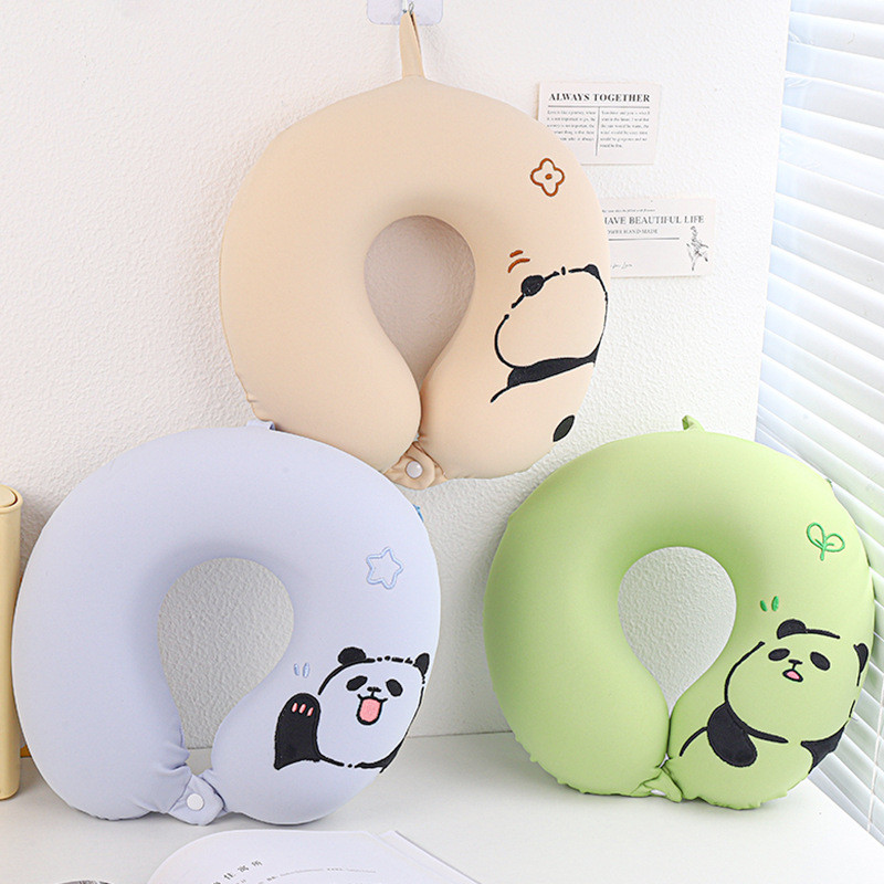 冰絲熊貓u型枕護頸椎夏季午睡枕記憶棉脖子支撐靠枕學生旅行枕頭