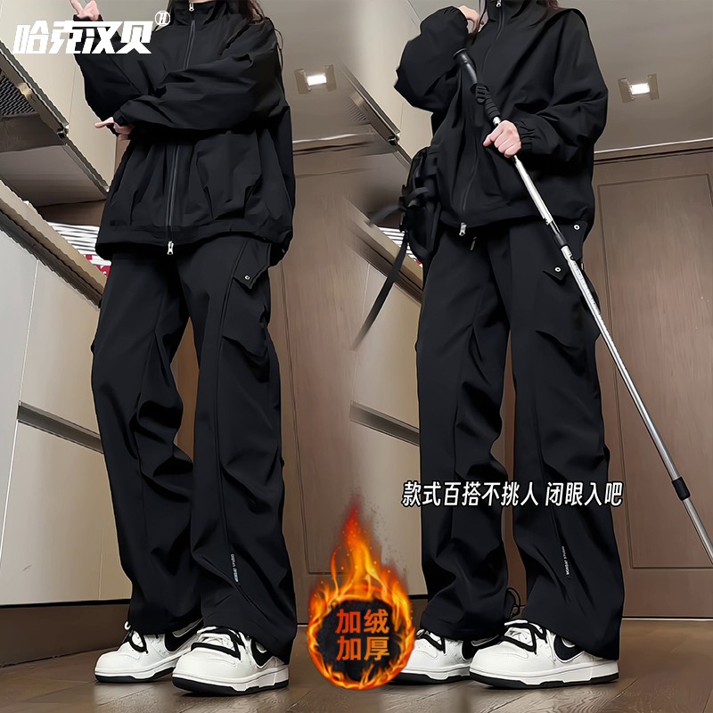 哈克漢貝加絨沖鋒褲男女秋冬季加厚直筒工裝褲防風防水機能登山褲
