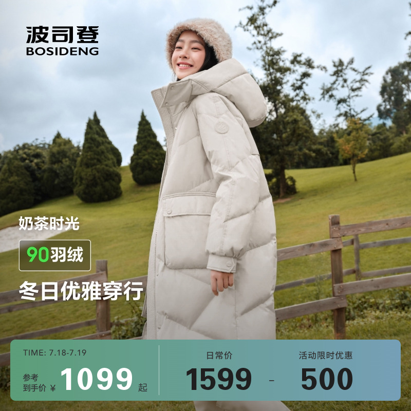 波司登戶外冬季時尚大口袋長款加厚保暖廓形羽絨服女