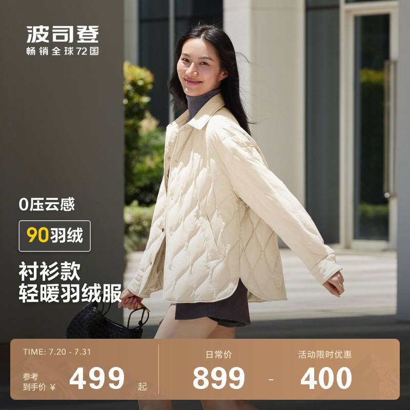 波司登戶外秋季輕薄羽絨服女短款簡約襯衫領外套女秋季冬