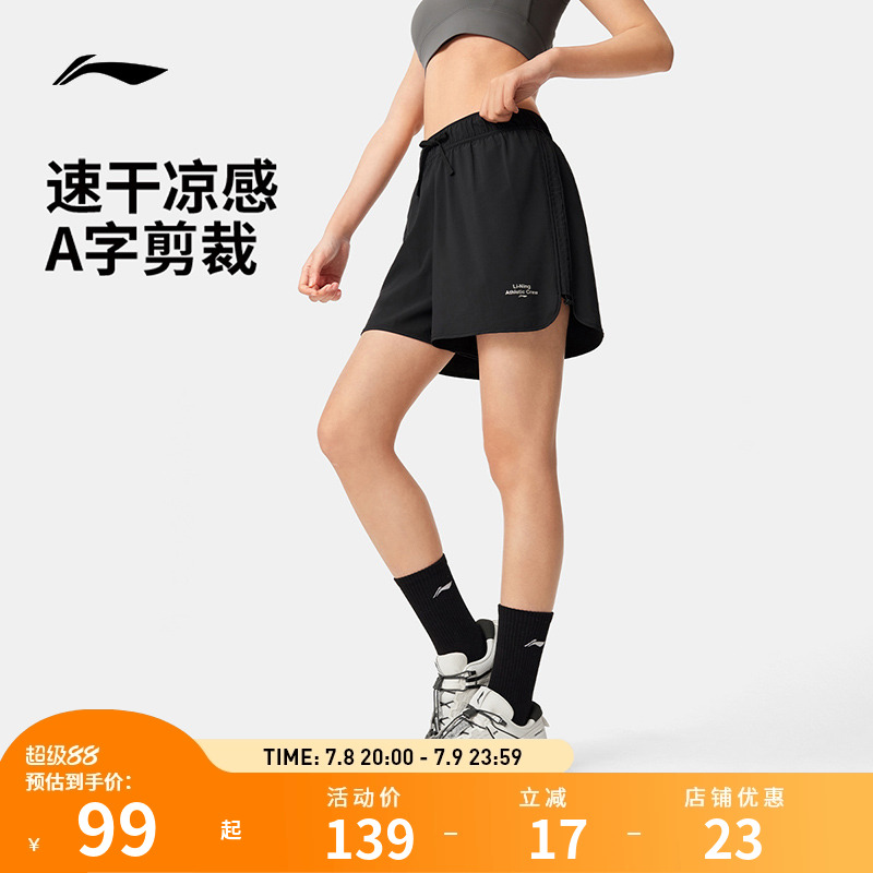 【25新品】李寧短褲 健身系列 女子速干涼感戶外瑜伽運動短褲