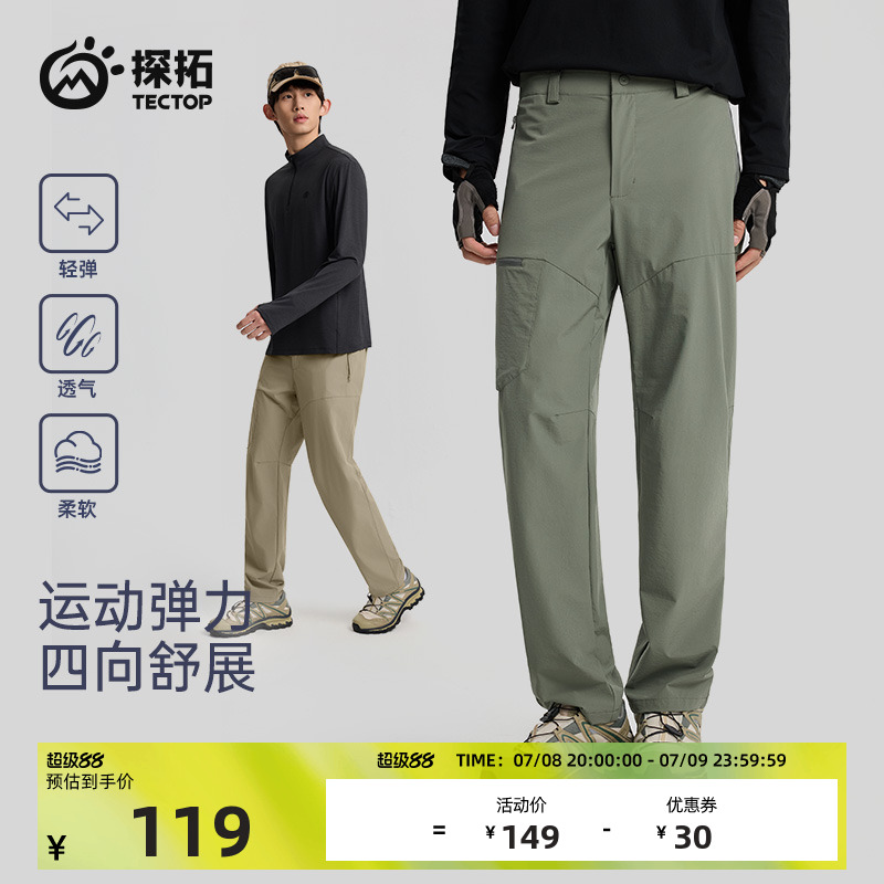 TECTOP/探拓戶外男士休閑褲春夏透氣彈力長褲登山徒步軟殼工裝褲