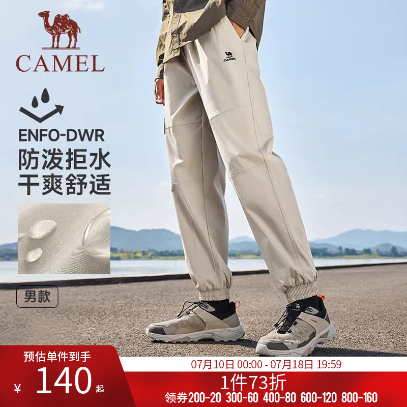 駱駝戶外休閑褲男女情侶款運動工裝褲防水休閑寬松梭織長褲束腳褲