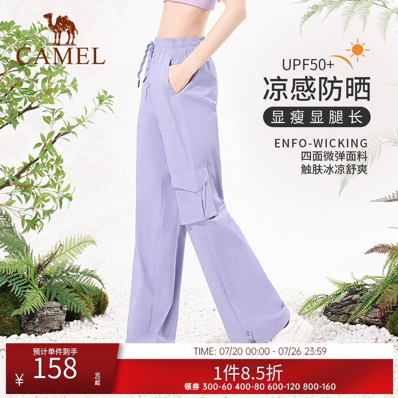駱駝工裝褲女褲春夏紫色新款休閑闊腿褲戶外登山運動褲防曬長褲