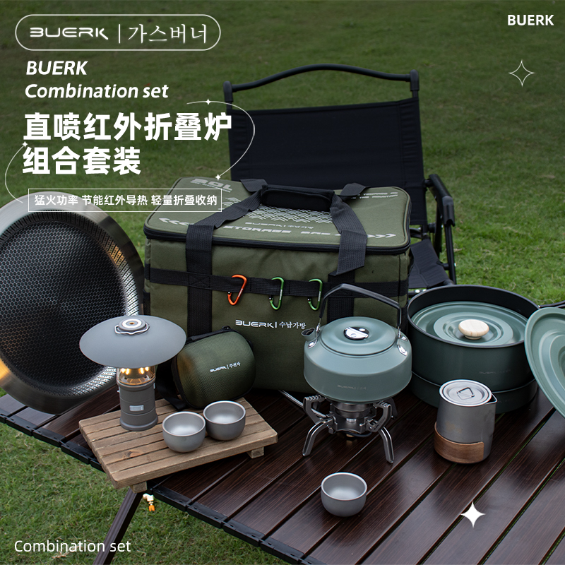 BUERK布比克卡式爐戶外便攜套裝爐具帶套鍋收納包野炊煎烤煮泡茶