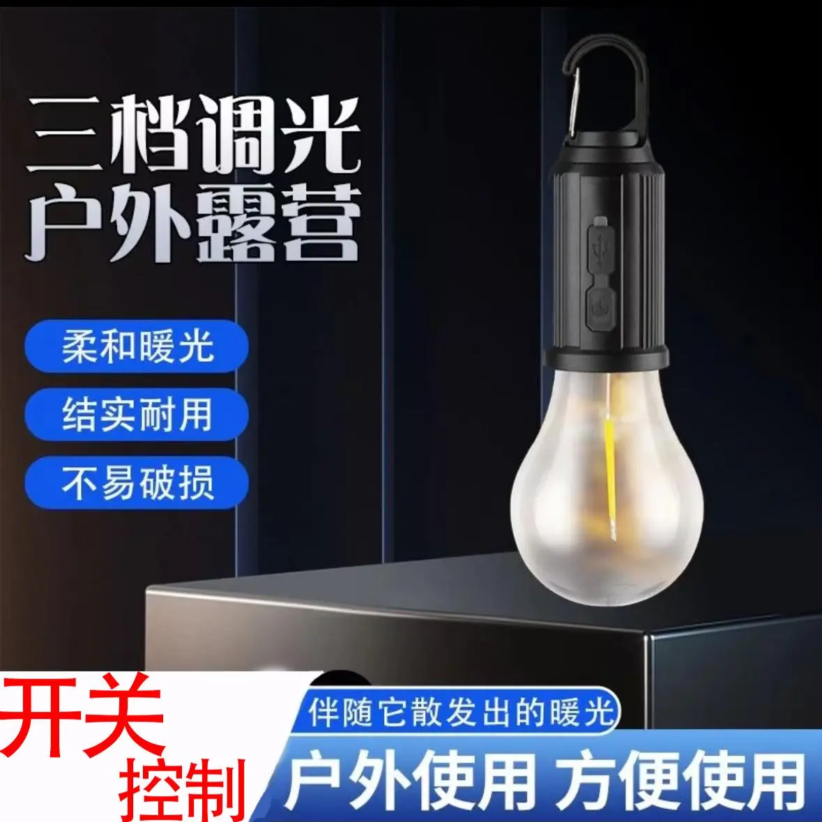 新款太陽能露營燈可充電復古氛圍野營燈鎢絲帳篷戶外應急球泡燈