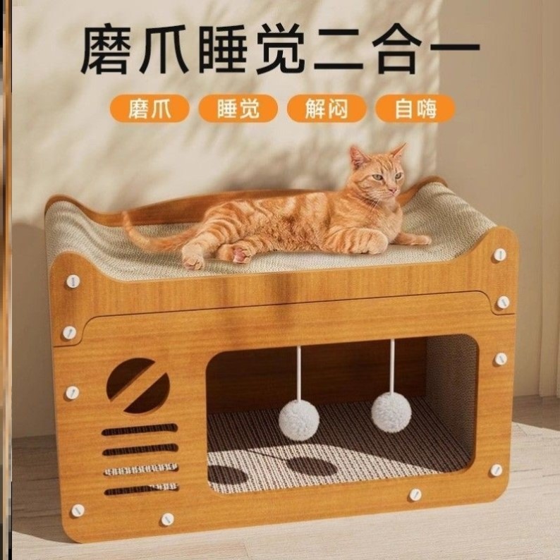 貓咪用品木質貓窩貓抓板一體大貓窩寬敞超大貓屋可疊加貓別墅四季