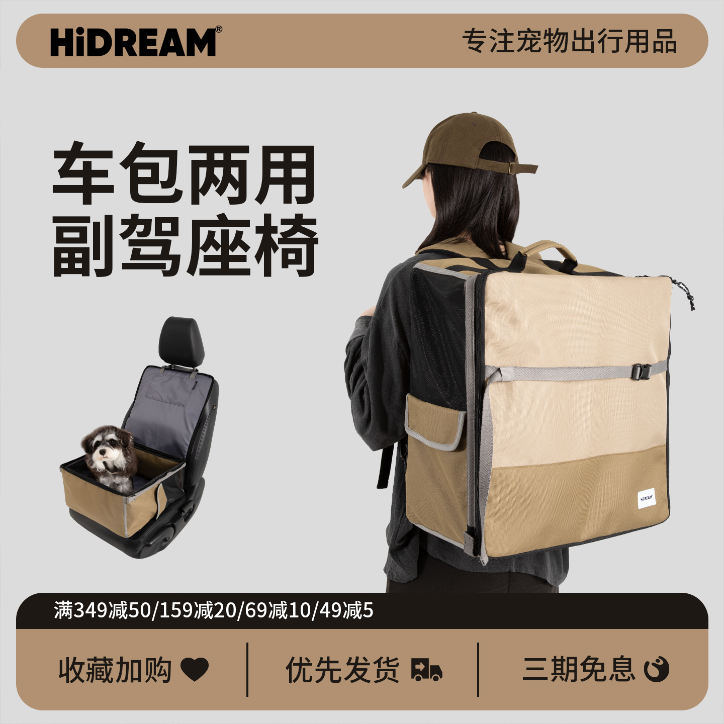 HiDREAM貓包外出便攜寵物車載副駕墊雙肩背兩用狗包大容量雙肩包