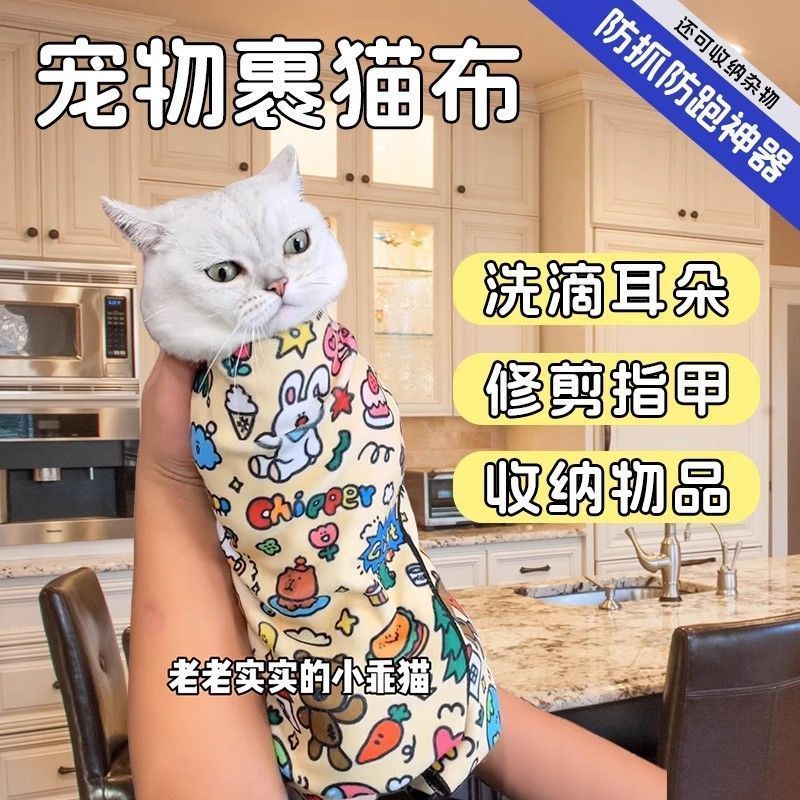 裹貓布貓咪剪指甲神器固定包防抓防咬包貓布自粘寵物洗澡貓包