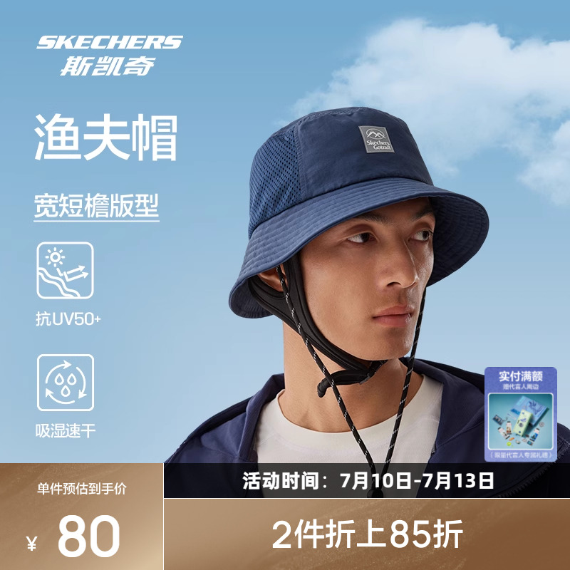 斯凱奇2025年春季新品運動漁夫帽帽子男女戶外防曬舒適時尚遮陽
