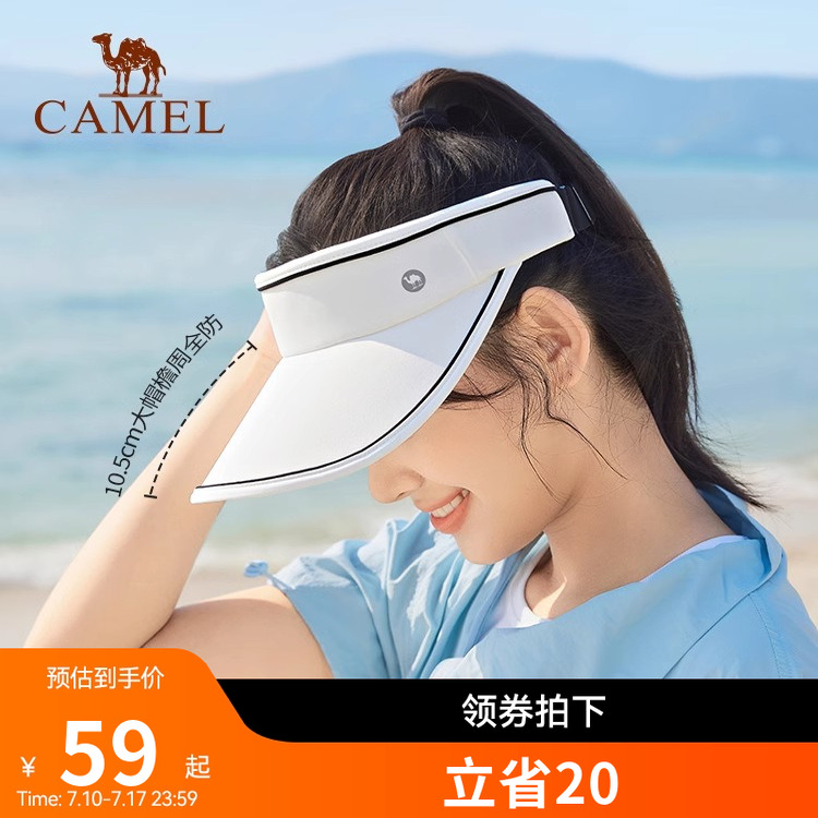 駱駝小蛋卷防曬空頂帽女夏防紫外線大檐遮陽貝殼帽子戶外太陽帽