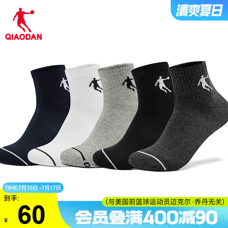 喬丹男休閑中襪(五雙裝)透氣吸汗2025春季新款基礎運動跑步舒適
