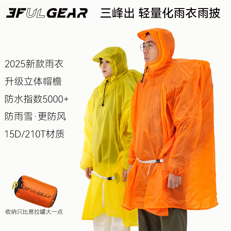 三峰出新款戶外雨衣男女涂硅徒步遠足登山三合一帶袖雨披地布天幕