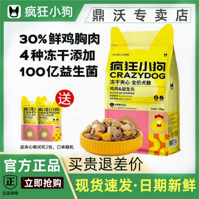 瘋狂小狗凍干夾心鴨肉梨狗糧泰迪比熊中小型犬幼犬成犬老年犬全價