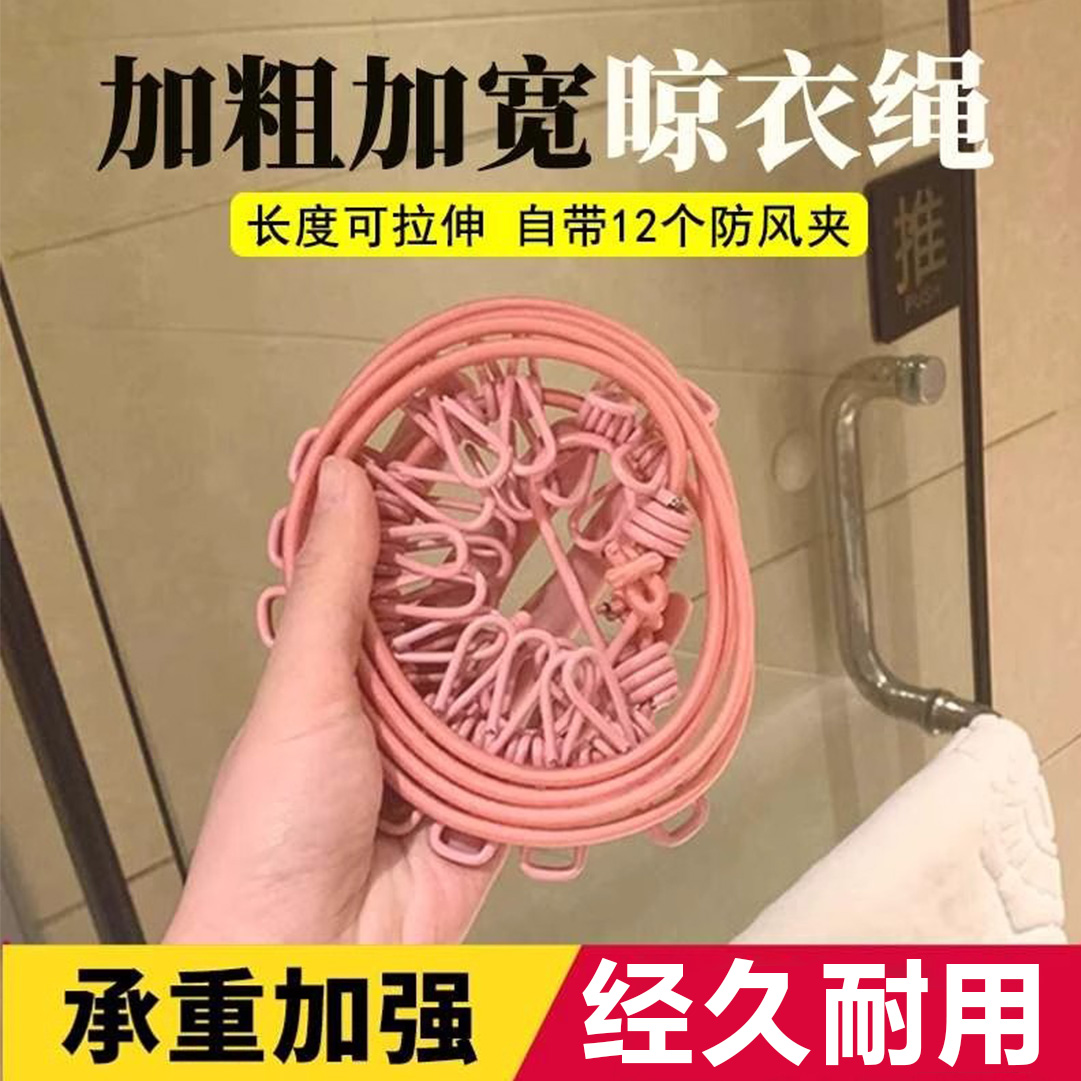 酒店便攜式戶外旅行晾衣繩便攜式夾子免打孔曬被子加粗一拉即緊