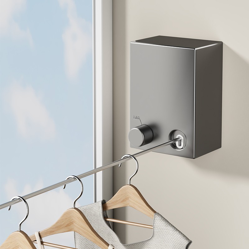 晾衣繩室內免打孔陽臺隱形伸縮式曬衣服神器鋼絲繩晾衣架收縮