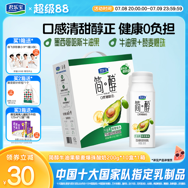 君樂寶簡醇牛油果藜麥爆珠0添加蔗糖酸奶整箱裝禮盒裝