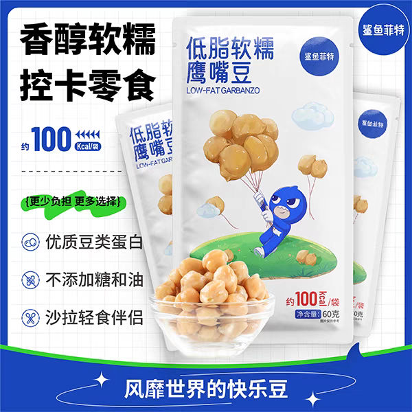 鯊魚菲特低脂鷹嘴豆健身解饞軟糯豆類休閑零食品開袋即食60g/包