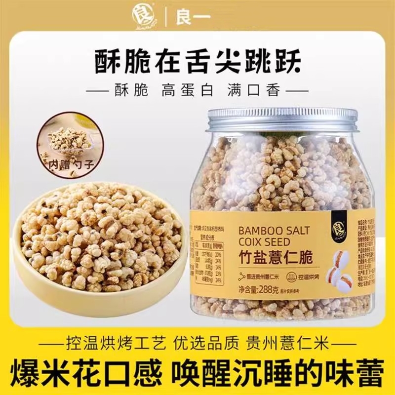 良一竹鹽薏仁脆鹽味高蛋白烘烤清香解饞零食即食258g罐裝休閑零食