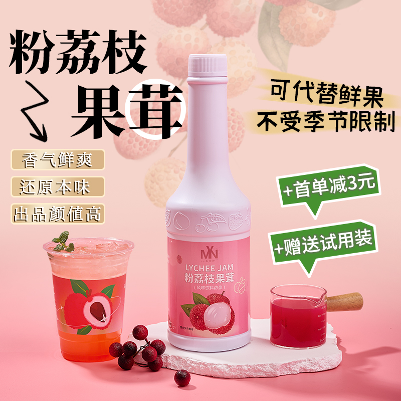 茗晟荔枝果茸1.5kg 荔枝濃縮汁沖飲果汁濃漿奶茶店專用荔枝汁果漿
