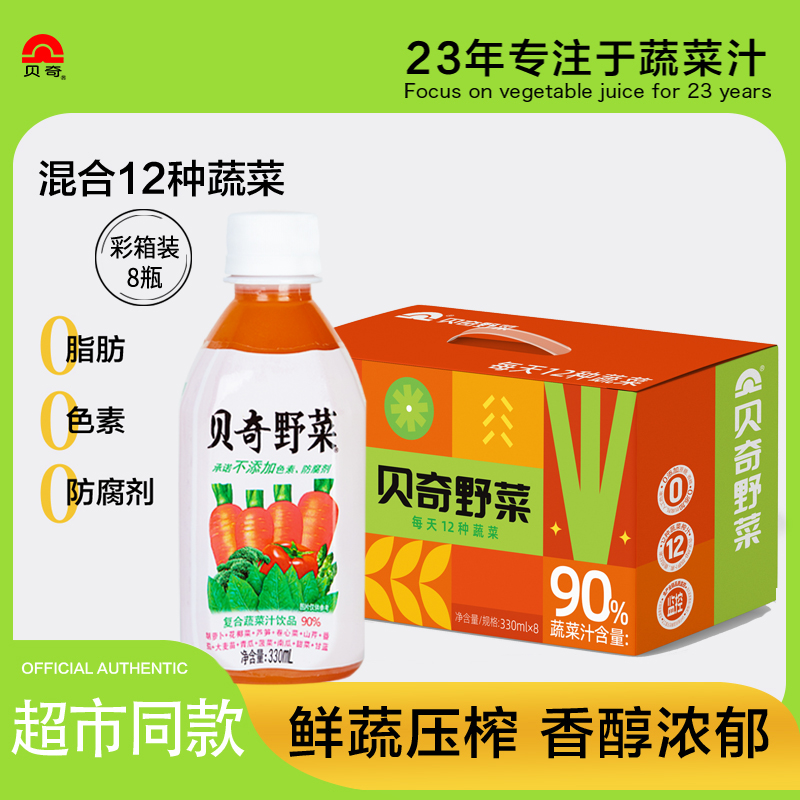 貝奇野菜汁330ml*8瓶胡蘿卜汁飲料0脂肪代餐每日C果蔬汁飲品整箱