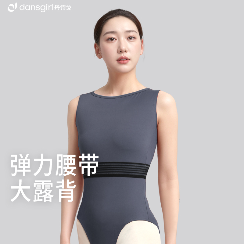 丹詩戈新款芭蕾連體舞蹈成人練功服彈力大圓領無袖露背舞蹈服女