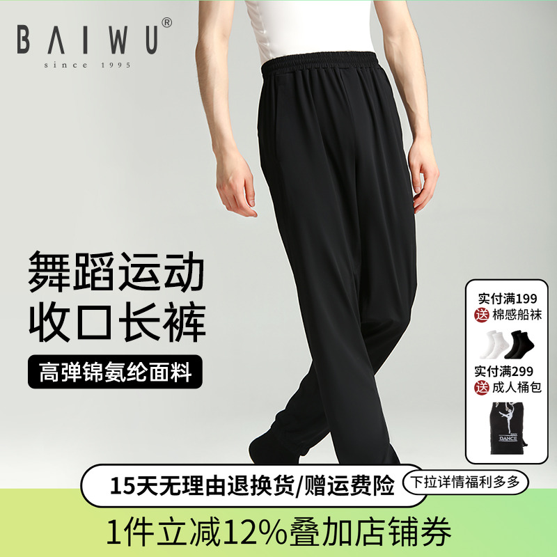 柏屋舞蹈褲成人男生舞蹈服專用運動收口長褲黑色練功褲125312070