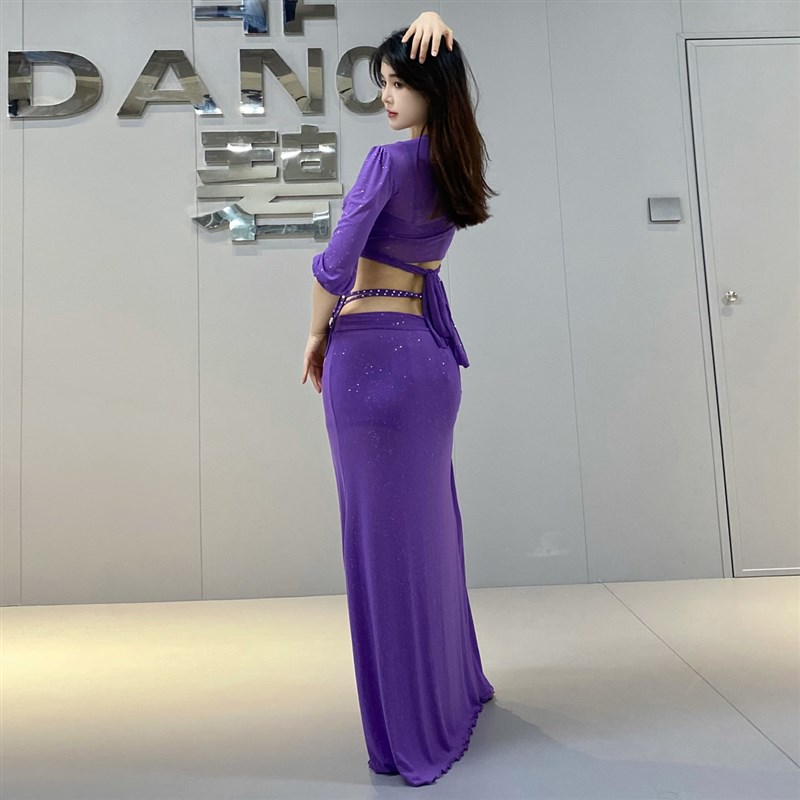 極速肚皮舞練功服秋冬新款套裝長裙演出服表演P服性感初學者練習